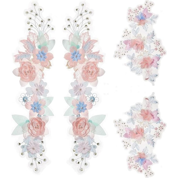 NICENEEDED 2 пары 3D цветок кружева аппликации розовый цветок вышивка шить на патчи бисер кружева отделка ткань аппликации