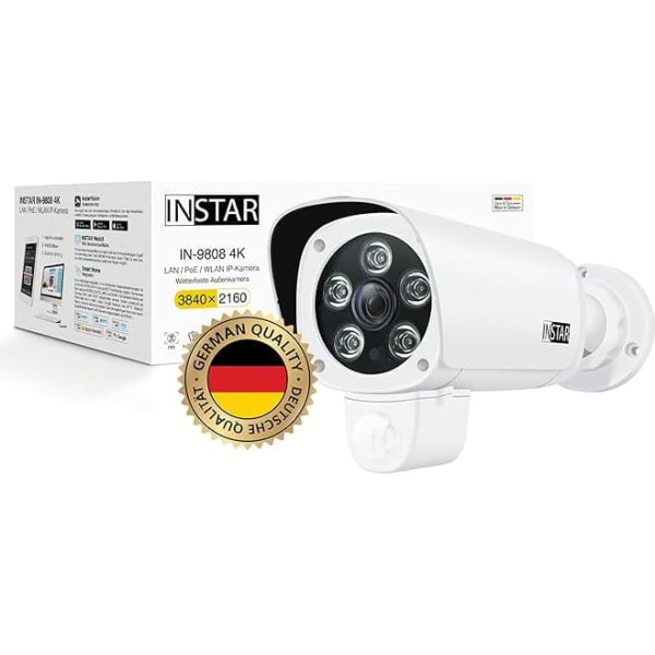 INSTAR IN-9808 4K камера наружного наблюдения, LAN/WLAN/PoE, HomeKit Secure Video, AI обнаружение людей, ИК ночное видение, микрофон, аудио, PIR, RTSP, WPA3, MQTT, ONVIF, NDAA/TAA