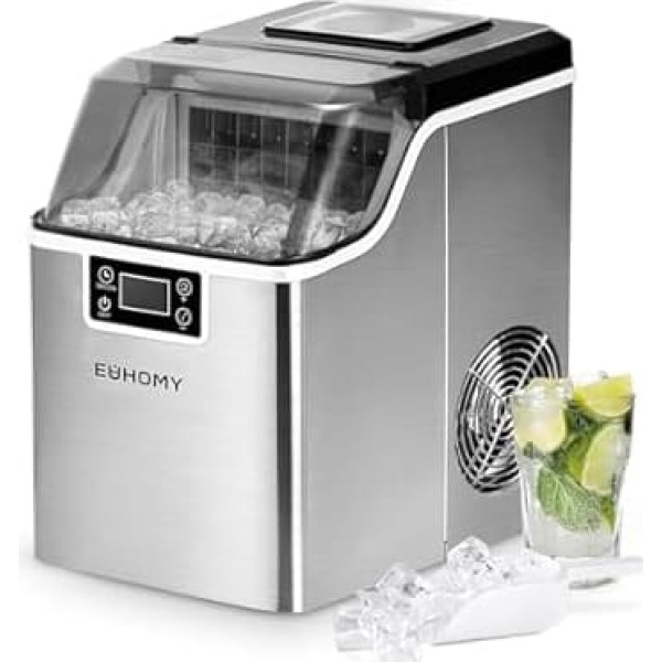EUHOMY Машина для производства кубиков льда из нержавеющей стали, 24 кубика льда за 13 минут, 24 кг/24 часа, гастроемкости, самоочистка, 3,2 литра, с с