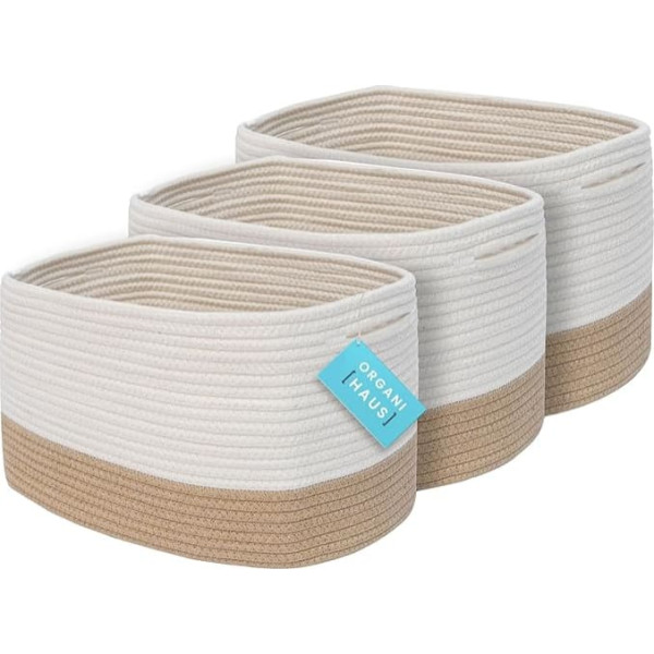 Набор из 3 корзин для хранения OrganiHaus - Маленькие плетеные хлопковые корзины для сортировки - Плетеная корзина для полотенец и белья для ванн