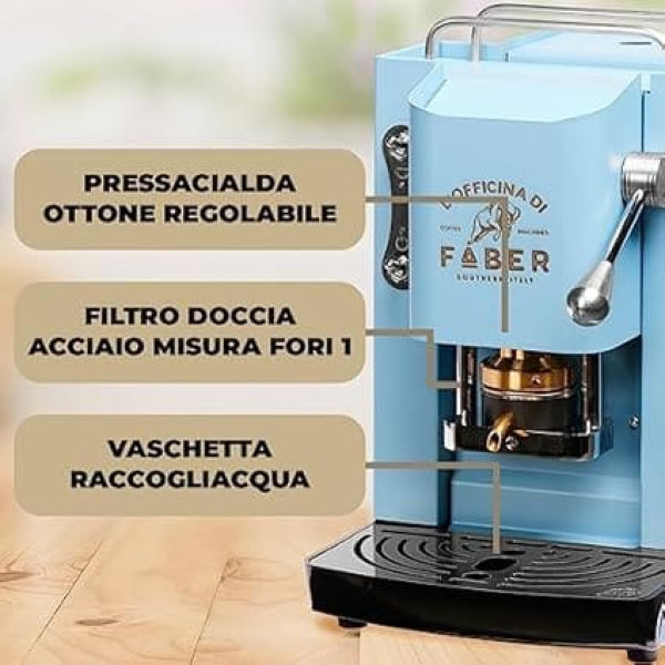 FABER COFFEE MACHINES | Model Pro Deluxe | Кофеварка с капсулами для 44-миллиметровых подушечек ESE | хромированная отделка | латунный пресс для подушечек (бирюз