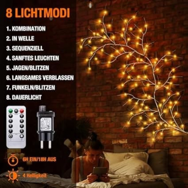 DAYLUMI Fairy Lights Branch Birch 96 LED Light Branches Fairy Lights with Plug, 8 Modes Waterproof DIY Light Tree for Wall Decoration Living Room Illuminated Tree Decoration [Energy Class F]