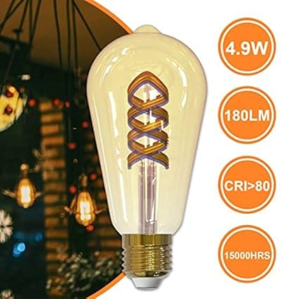 ANTELA Alexa Лампочки E27 Smart LED Vintage Edison Lamp 5 W, WiFi RGB Dimmable Bulb, App Control Compatible with Google Home, Warm White Light, No Hub Required, Pack of 2