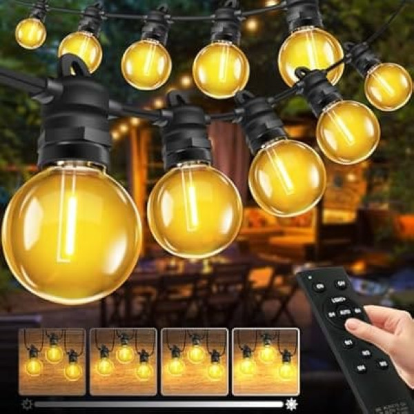 Фея Огни Открытый Мощность, 15 м G40 Лампочки Балкон Фея Огни Открытый с 25 + 2 Штуки, IP68 Водонепроницаемый Dimmable Gazebo String Lights С Пультом ДУ для Сада
