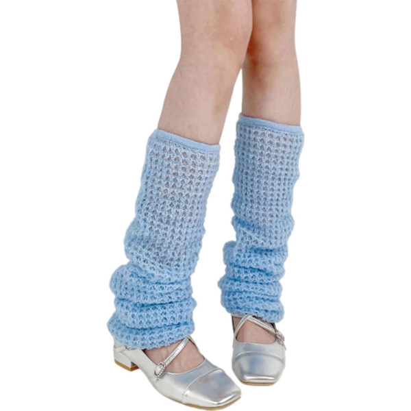 Женщины Японский Эстетика Hollowout Вафли Вязать Leg Warmers Длинные Ноги Крышки Сетка Чулки Slouchy Носки Streetwear