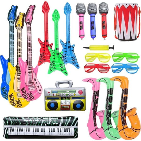 DIYASY 20 надувных музыкальных инструментов, включая надувную гитару, саксофон, микрофон, бас, радио, клавиатуру, барабан и очки
