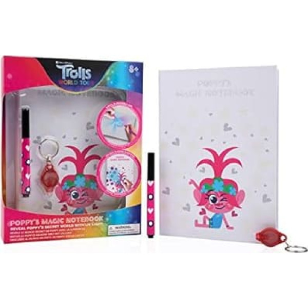 WOW! STUFF TRL-1015 Trolls World Tour Блокнот Поппи, меняющий цвет, и ручка с волшебными чернилами