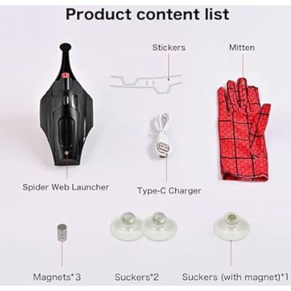 Spider Web Shooter Spider Web Launcher Automatic Cord Winding Non Jamming Rope Launcher USB Charger Electric Recording Children Gifts Superhero Role Play