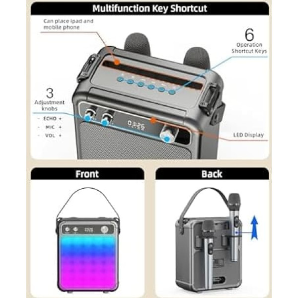 EVINYEP Портативная Караоке Машина, 15 Вт Глубокий Бас Мини Караоке Динамик с 2 Беспроводными Микрофонами, Светодиодные Огни Вечеринки, 5 Звуков EVINYEP Портативная Караоке Машина, 15 Вт Глубокий Бас Мини Караоке Динамик с 2 Беспроводными Микрофонами, Светодиодные Огни Вечеринки, 5 Звуков 65.02€ ANEB0F1D3P3J4T