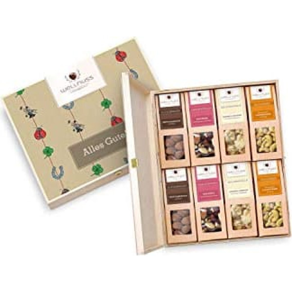 WELLNUSS, "Alles Gute" Подарок для гурманов на день рождения Подарочный набор деликатесов для мужчин и женщин в высококачественной коробке из берез