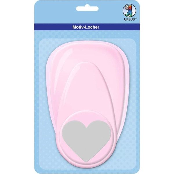 Ursus 19460001 - Дырокол для мотивов с рычагом jumbo, сердце, розовый, пробиваемый мотив ок. 76,2 мм, из пластика с металлическим пробойником, подходит д