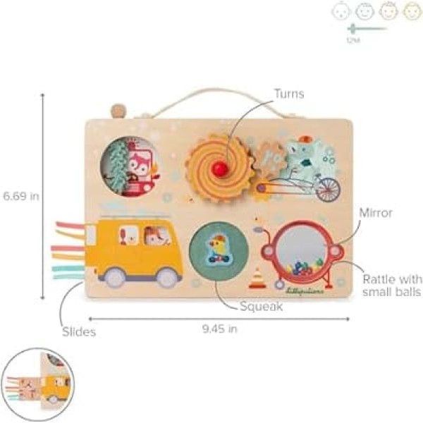 Lilliputiens - Транспортные средства на доске - Занимательная доска для малышей - Мультиактивная игрушка для малышей - Развивает мелкую моторику -