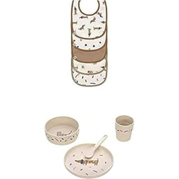 LÄSSIG Baby Toddler Bib Set (5 Pieces) Velcro Cotton Waterproof / Value Pack Bib
