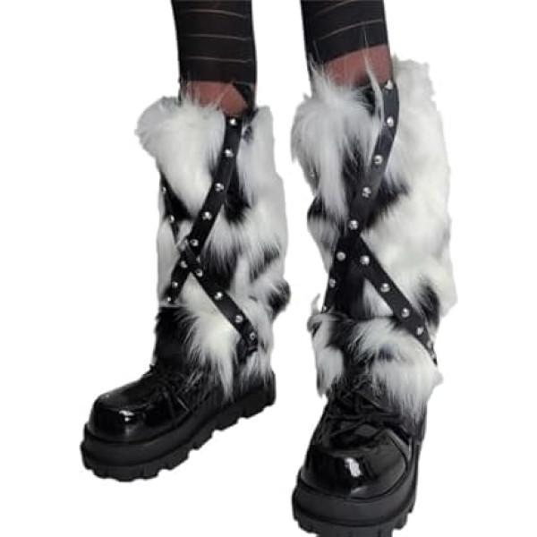 Панк Studded ремни меховые ноги грелки для женщин эстетические бабочка пушистые сапоги манжеты ноги охватывает чулки зимние наряды