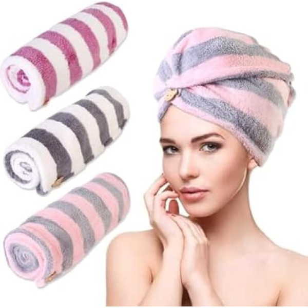 Mikrofaser-Handtuch für Damen, schnell trocknend, für alle Frisuren, Anti-Frizz, großes Haartuch mit Knopf, 3 Stück