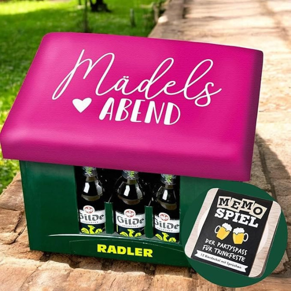 Приставка к пивному ящику "Девичник" - сиденье для пивного ящика с пивным ковриком Memosphere - крышка для пивного ящика - табурет для балкона в ке