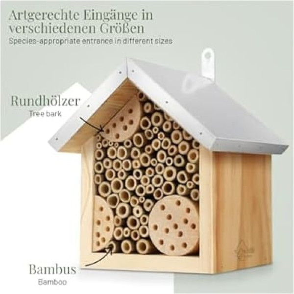 WILDLIFE HOME Пчелиный отель с металлической крышей, отель для диких пчел, готовый к сборке, изготовленный из сосновой древесины и 100% погодоустой