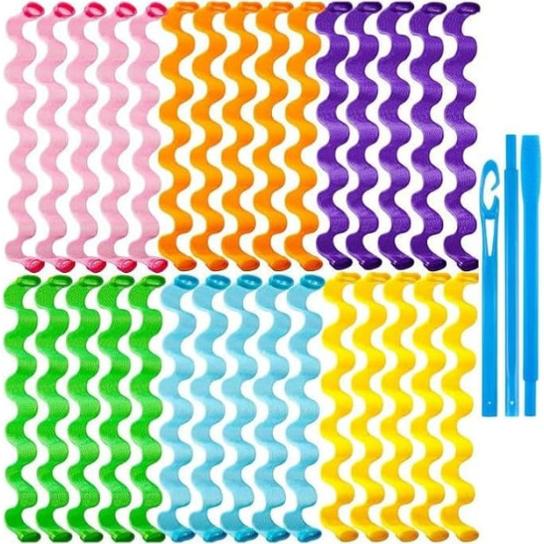 OCCOUMR Pack of 30 Curlers for Long Hair, Curlers Spiral Curls Styling Kit No Heat Hair Curlers Wave Styles with 2 Pieces Styling Hooks for All Hair Lengths