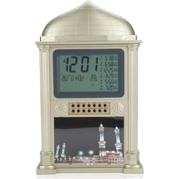 1 x Пластиковые часы Азан Молитва Нимаз, цифровой календарь времени дисплей, будильник с ЖК-дисплеем (золотой)