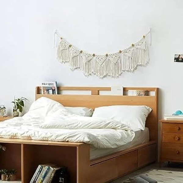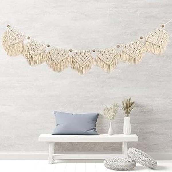 Tokenhigh Macrame Wall Hanging, декоративный гобелен в стиле бохо, гобелен с листьями, гирлянда с бахромой, 100 см x 14 см, гирлянда ручной работы, настенное у