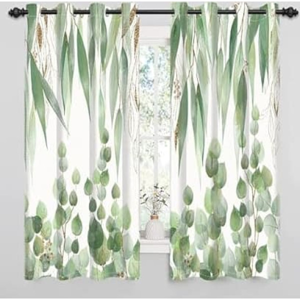 Шторы из эвкалипта, текстильные шторы с зелеными листьями, непрозрачные шторы из полиэстера, блэкаут с люверсами для гостиной, спальни, окн