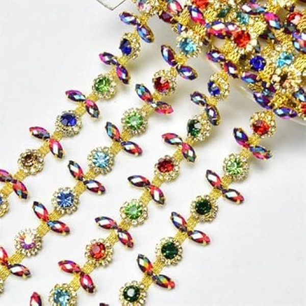 Niiyyjj 91 см, позолоченная металлическая цепочка со стразами, блеск, отделка для шитья, аппликация для одежды, украшения, Siam AB, 91 см