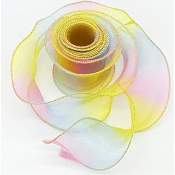 3ft Лента Органза Проводной Золото Волнистый Шелк Радуга Лук Кружева Лента для Шитья Кружева Украшения