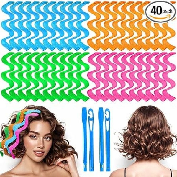 Бигуди для волос без нагрева, не повреждают волосы, волнистые бигуди с 2 наборами крючков для укладки, кудри без нагрева для женщин и девуше