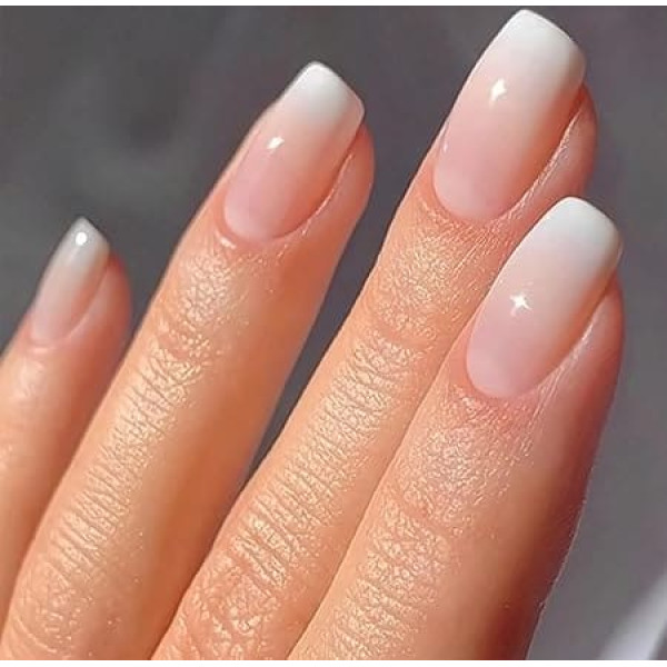 Короткие квадратные ногти - французский кончик накладных ногтей - 24 шт. градиентные бело-розовые накладные ногти с клеем - многоразовые, гля