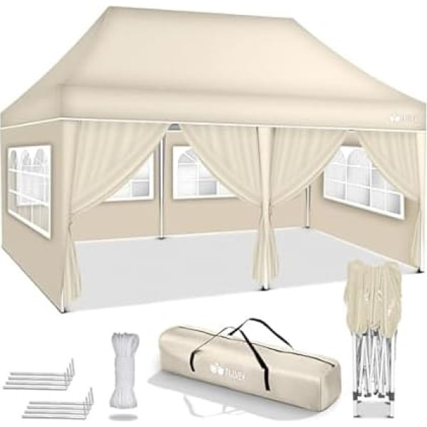 Беседка 3 x 6 м Водонепроницаемая складная беседка Регулируемая высота Садовая палатка Защита от ультрафиолета 50+ Вечеринка Палатка с сумко