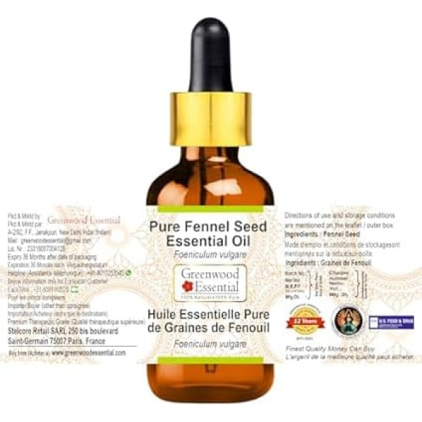 Greenwood Essential Natural Pure Fennel Seeds Essential Oil (Foeniculum Vulgare) со стеклянной пипеткой Natural Pure Therapeutic Quality Steam Distilled 50 ml (1.69 oz)