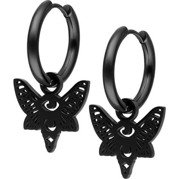 Серьги-обручи "Маленький мотылек" черный один размер, нержавеющая сталь