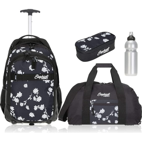 Elephant Hero Signature School Trolley Backpack Trolley Sports Bag Pencil Case Bottle 12800 4-Piece Set, Black Flower, Набор школьных сумок