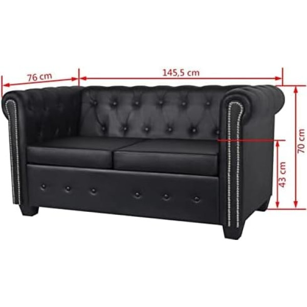 ‎Homgoday Homgoday Chesterfield Sofa 2 Seater Faux Leather Black Sofa for Living Room Modern Sofas Double Sofa Living Room Sofas