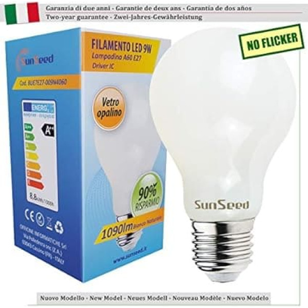 SUNSEED 10x Filament LED Opal Classic Bulb E27 9 W Replaces 83 W Neutral White 4000 K