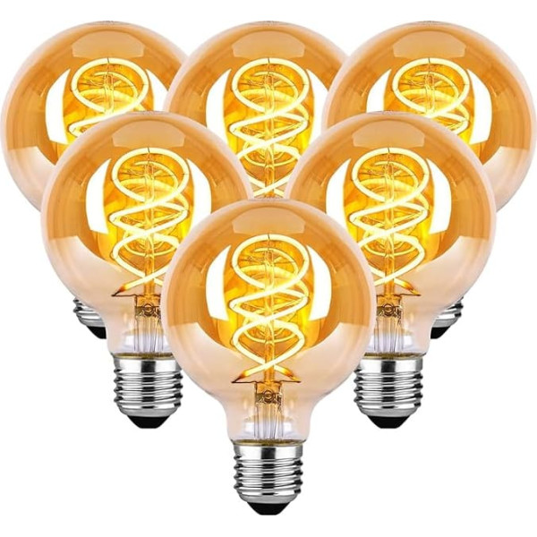 HUSTUNG Edison Vintage Light Bulb E27, E27 LED Vintage Dimmable 4 W G80 Warm White 2700 K, Retro Light Bulb Edison LED Lamp Ideal for Nostalgia and Retro Lighting - Amber Glass - Pack of 6