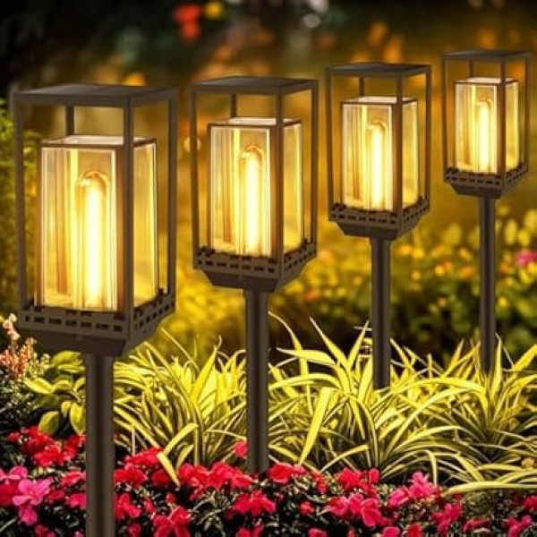 Yorezcop Солнечные фонари для наружного сада, упаковка из 4 солнечных садовых фонарей, 1000 мАч Водонепроницаемые солнечные фонари для наружного