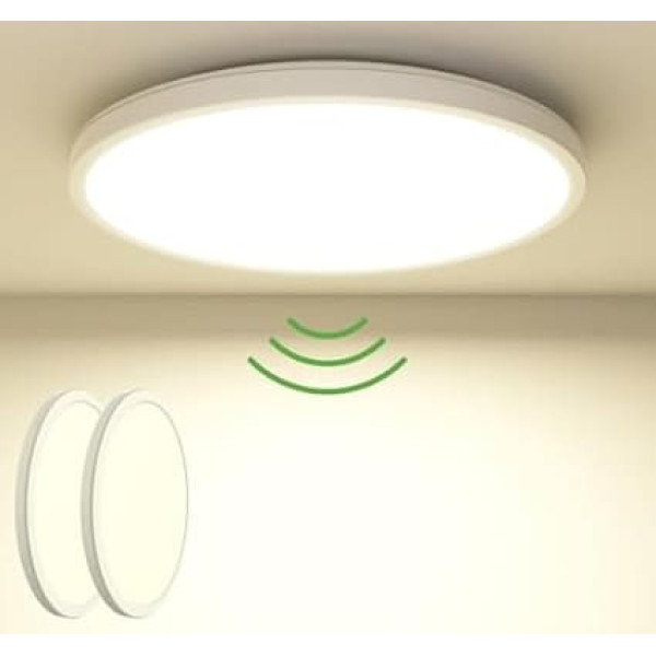 Потолочный светодиодный светильник Zemty с датчиком движения 19 Вт 4000 K, плоская лампа для помещений, 22 см 1800 LM круглый IP44 настенный светильник