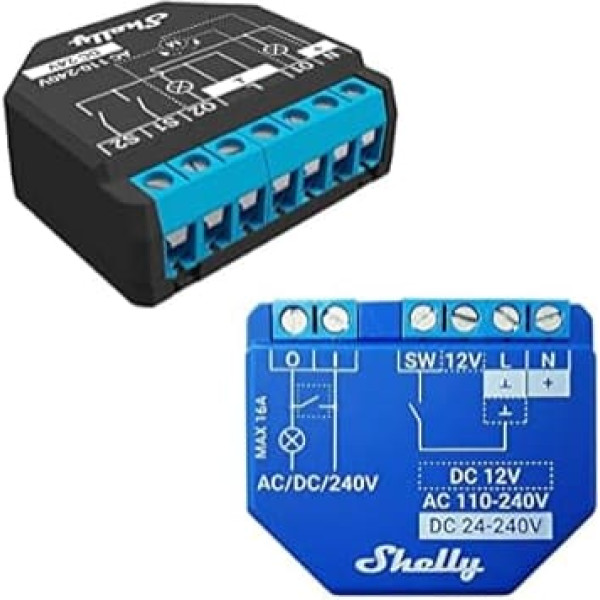 Shelly Plus 2PM Smart Home Double Relay Switch, Black & Plus 1 Smart Home Relay Switch, цифровое управление электронными устройствами через бесплатное приложение и WiFi