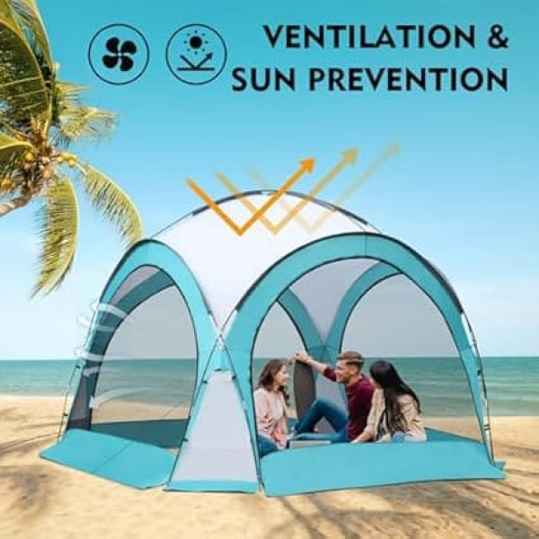 CAMPMORE Shelter Partyzelt Pavilion Event Shelter H246xL366xB366cm Pavillon Rund 9-12 Personen Screen House Zelt Wasserfreigabe Gartenpavillon Zelt Kuppelzelt geeignet für Strand Camping