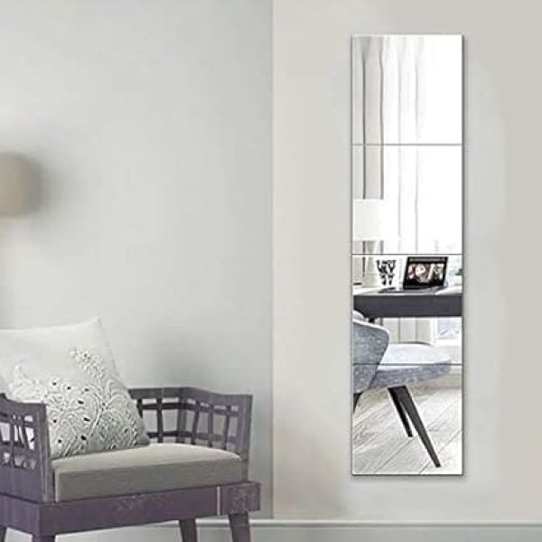 Muzilife Стеклянная зеркальная плитка 4 шт. 30 x 30 см с 4 клеящимися ковриками, HD настенное зеркало для кухни, гостиной и ванной комнаты