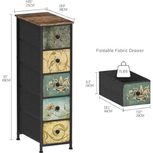 VEDECASA 5 Ящик Комод Узкий Ткань Комод для Спальни Небольшое Пространство Хранения Башня Единица для Ванной Кухня Гостиная Прихожая Прихожая