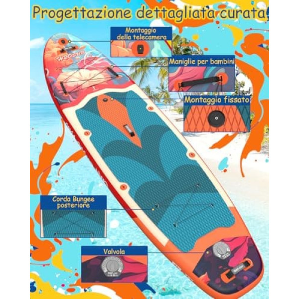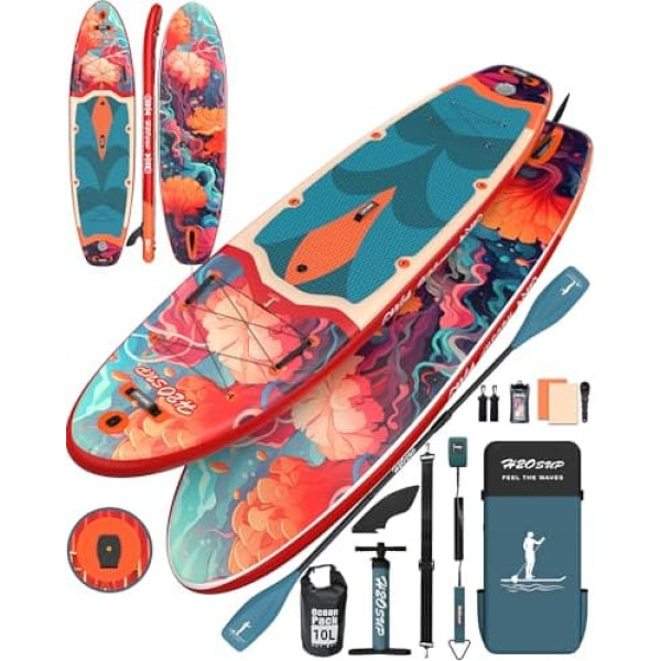 H2OSUP Надувная доска Stand Up Paddle Board, 3 м x 76,2 см x 15,2 см с рюкзаком, прочные аксессуары для SUP Board, дополнительные D-кольца для сиденья каяка и нескол