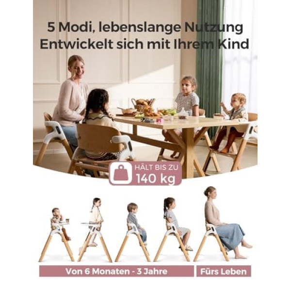 Momcozy DinerPal Высокий стул из букового дерева, регулируемый и трансформируемый для младенцев, малышей и взрослых, с функцией обучающего стула и