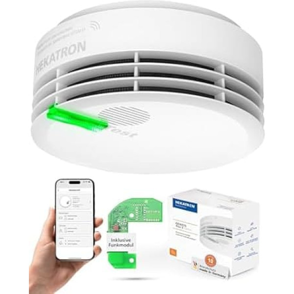 Hekatron Genius Plus X - Сетевой детектор дыма с 10-летней батареей - с радиомодулем Base X - Победитель теста Stiftung Warentest - Сделано в Германии - Комплект бес