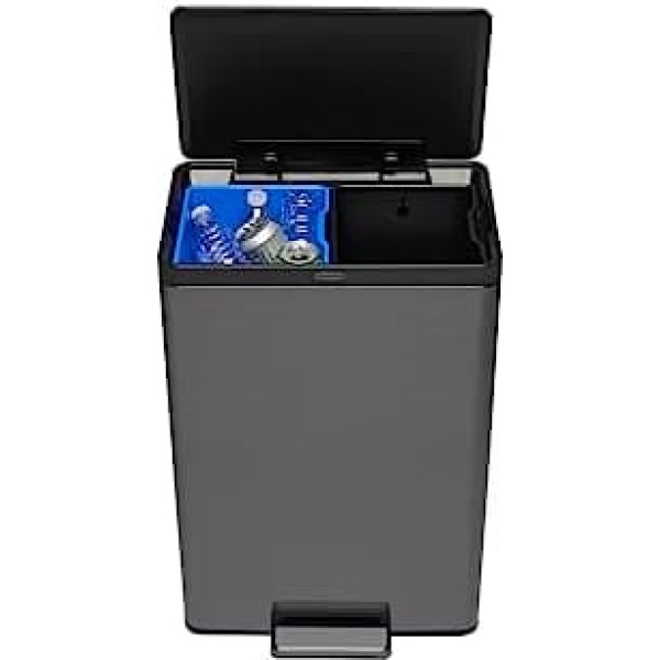 Rubbermaid Elite Stainless Steel Metal Dual Stream Step-On Мусорный бак для домашних кухонных отходов и вторсырья, 30 л, антрацит, металлическая нержавеющая сталь, син