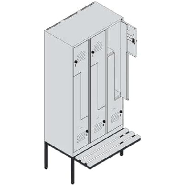 C + P Möbelsysteme C+P | Z-Spind Classic Plus Sitzbank | 3 Abteile | verkehrsweiß | B 900 mm | Sicherheits-Drehriegel | auskragend | Buche-Hartholz