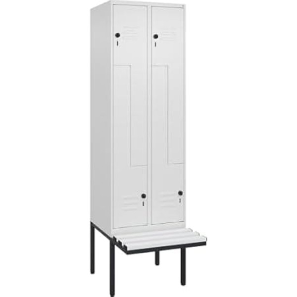 C + P Möbelsysteme C+P | Z-Spind Classic Plus Sitzbank | 2 Abteile | verkehrsweiß | B 600 мм | Sicherheits-Drehriegel | auskragend | Kunststoff
