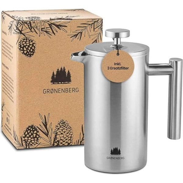 Френч-пресс Groenenberg, нержавеющая сталь, 0,35-1 литр (2-5 чашек), кофеварка с двойными стенками, изоляция, кофейный пресс, сменные фильтры и пошагов