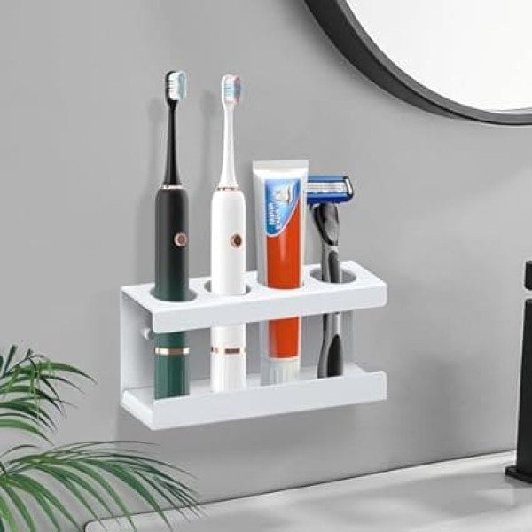 Держатель зубной щетки белый 4 отверстия 35 мм Электрический держатель зубной щетки оснащен клеем и винтами, сверление или без сверления Дв